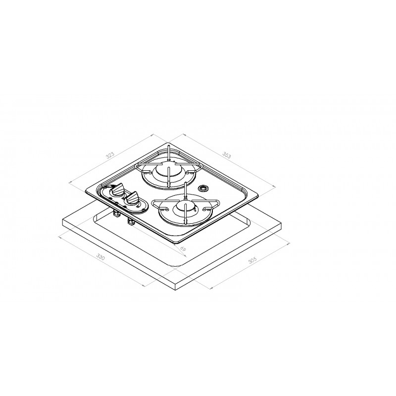 Hob gas with manual ignition, mirror polished stainless steel. Built-in installation. With safety thermocouple. Complete with fixing screws. With hole for pot holder. CE certified.