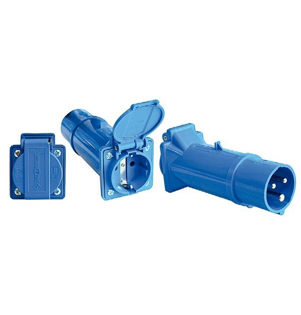 Adaptador macho CEE-17 de 2 polos mais Shucko IP 54, terminal fêmea 16A.