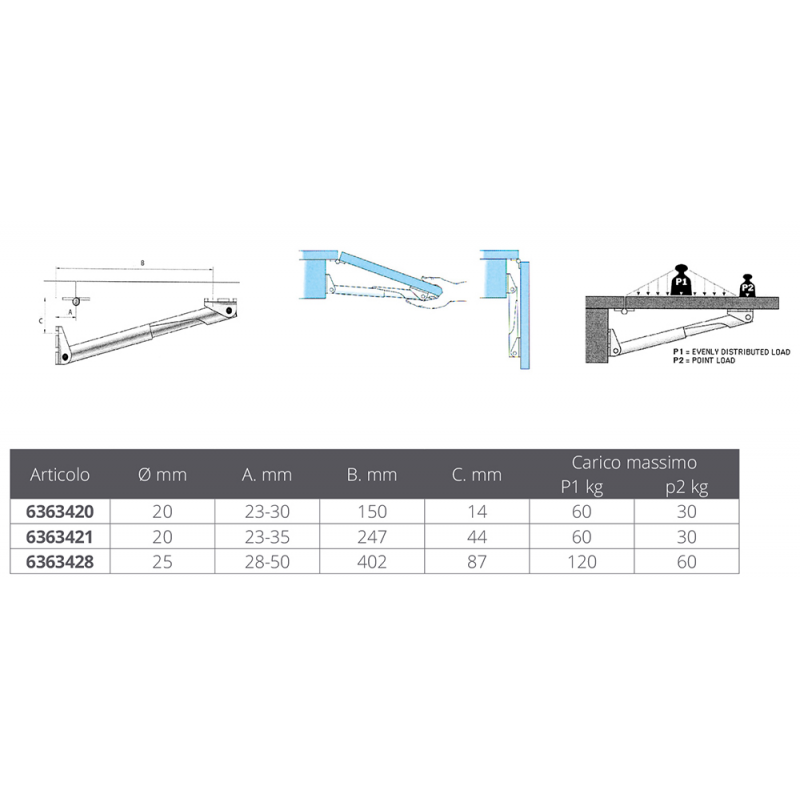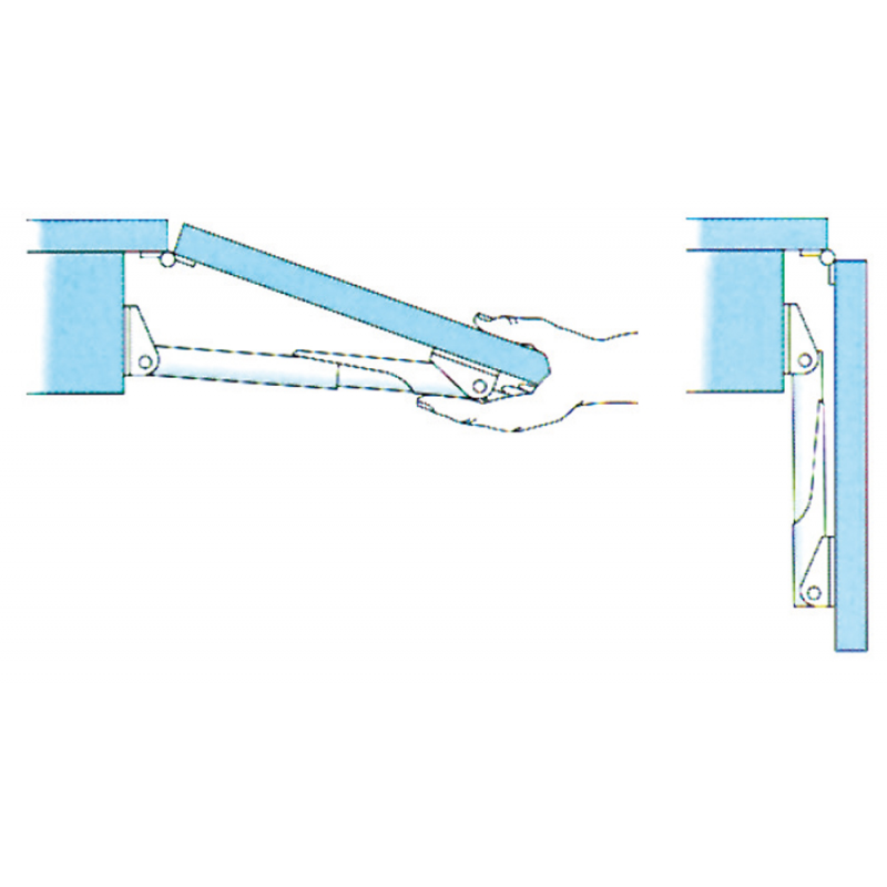 Foldable support in anodized light alloy, for tables and shelves, easy to install. Lenght mm 150