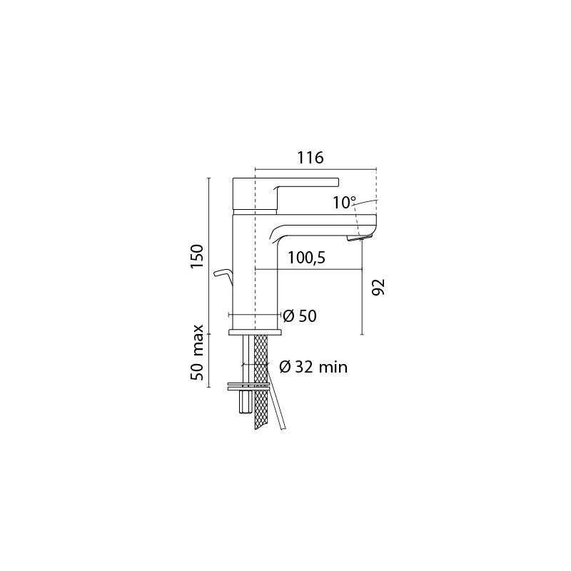 Basin mixer tap. Complete with 1’1 / 4 automatic drain bushing. Ø 50 mm. 3/8 “hose connector