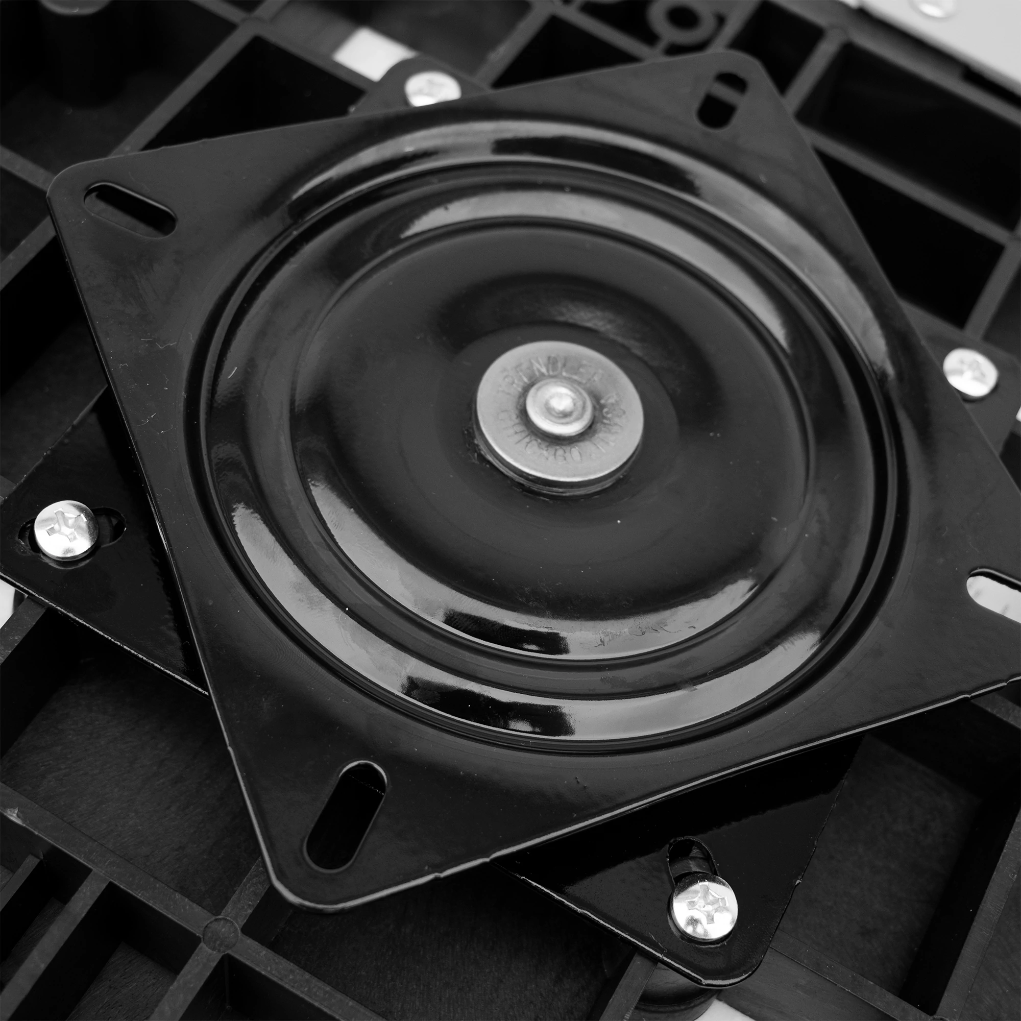 Fabricada em aço com um revestimento preto. Gira 360 ° e é compatível com a grande maioria dos assentos.