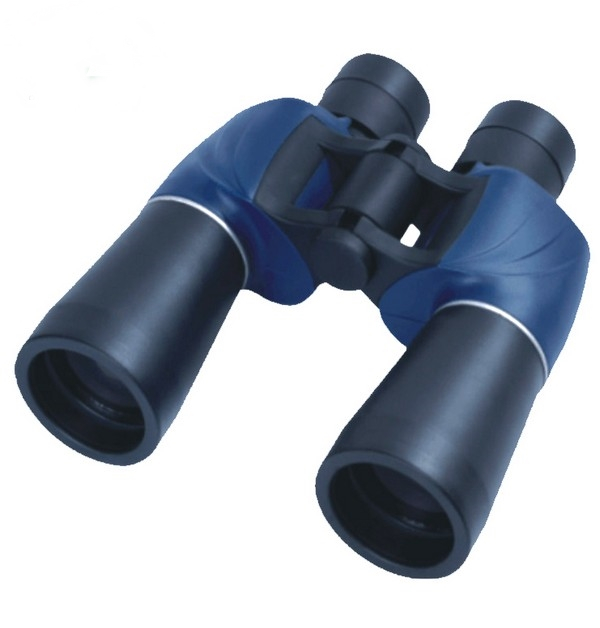 Binóculos potentes, com oculares dobráveis, possuem uma combinação de duas cores, como preto e azul escuro, o corpo do binóculo é feito de material termoplástico de alta resistência, medindo 7x50mm.