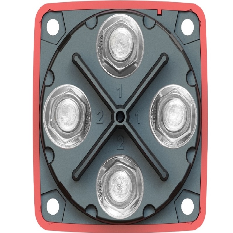 Este comutador é ideal para combinar com um Relé de Descarga Automática que, automatizará a carga enquanto o comutador simplifica a comutação das baterias. Numa emergência, este comutador permite a combinação de dois bancos de baterias na posição ON. A funcionalidade de combinação permite uma ligação cruzada entre os bancos de baterias para um arranque do motor ou uma chamada de rádio.