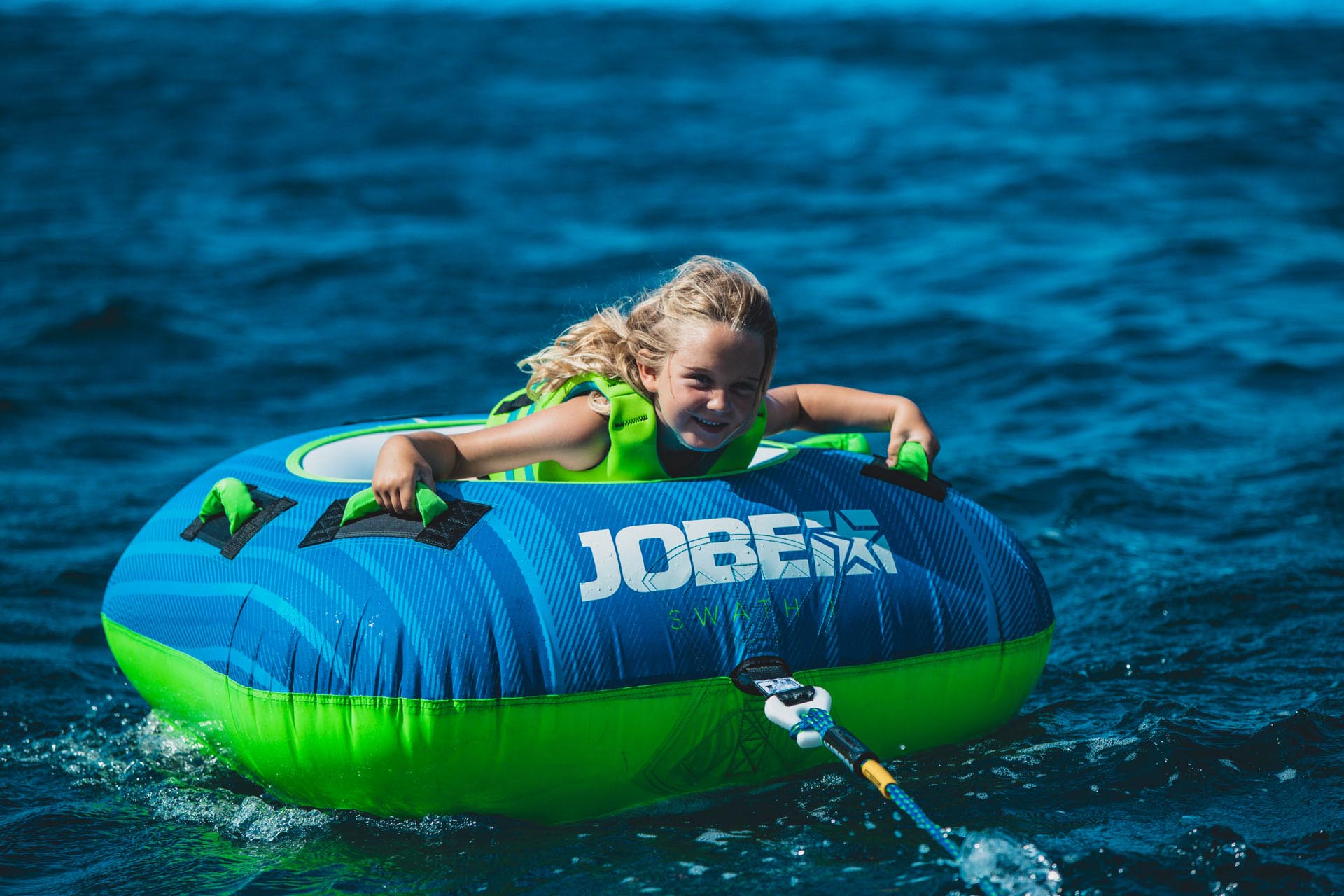 Apresentando o novo Jobe Swath Rebocável 2P! O mais novo rebocável da nossa coleção. Este tubo rebocável ultra divertido é a desculpa perfeita para se divertir ou rasgar na água. Com 4 alças convenientemente colocadas com protetores de junta de neoprene, você pode sair ou se pendurar para sempre!