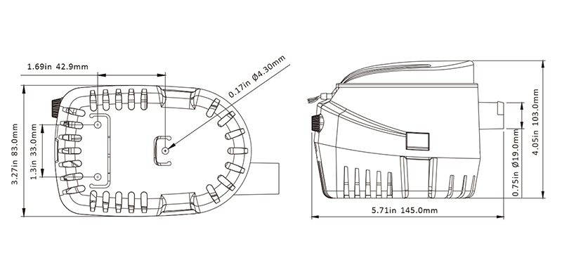 Bomba de porão Com suporte/base para instalação vertical ou horizontal