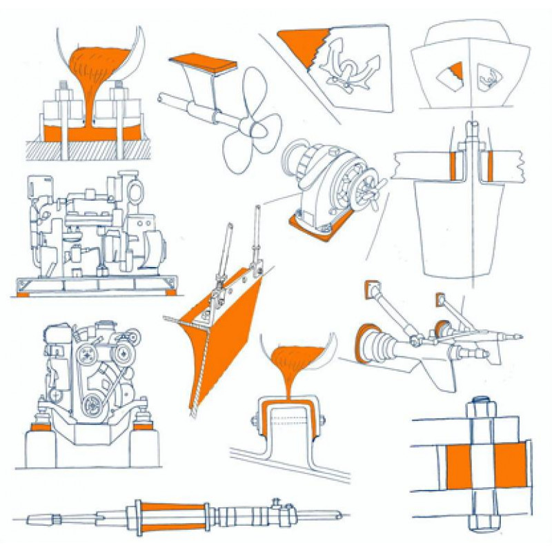 Two-component epoxy system, without solvent, loaded with mineral aggregates, 100% dry residue. Developed and formulated for leveling, embedding, alignment, perfect couplings for metal, fiberglass and wood. Withstands strong compressive loads, thermal shocks, impacts, vibrations, tractions, even in the presence of water and oils. RINA, RINAMIL approved.