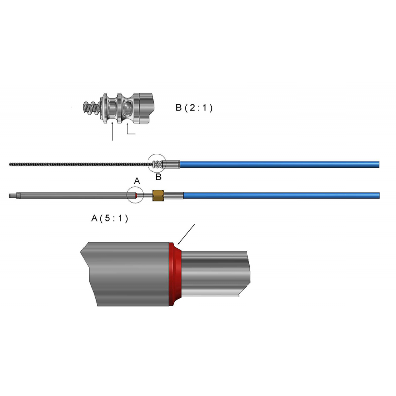 M90 Mach, cable specifically designed for high performance and high efficiency applications. Offers greater flexibility and durability. Ideal for long cables with a reduced bending radius (mm.150), built with materials resistant to marine corrosion, the end of the single-cable motor side is made of stainless steel with a patented seal and is equipped with a quick coupling system, it is specific for T91, T93ZT, T101, T103ZT steering gear is also usable on wheelhousesUltraflex T85, T71FC, T 72FC, T73NRFC, T 74NRFC, T81FC, T83NRFC, T82FC. The M66 single cable cannot be used with the T91, T93ZT, T101 and T103ZT steering systems