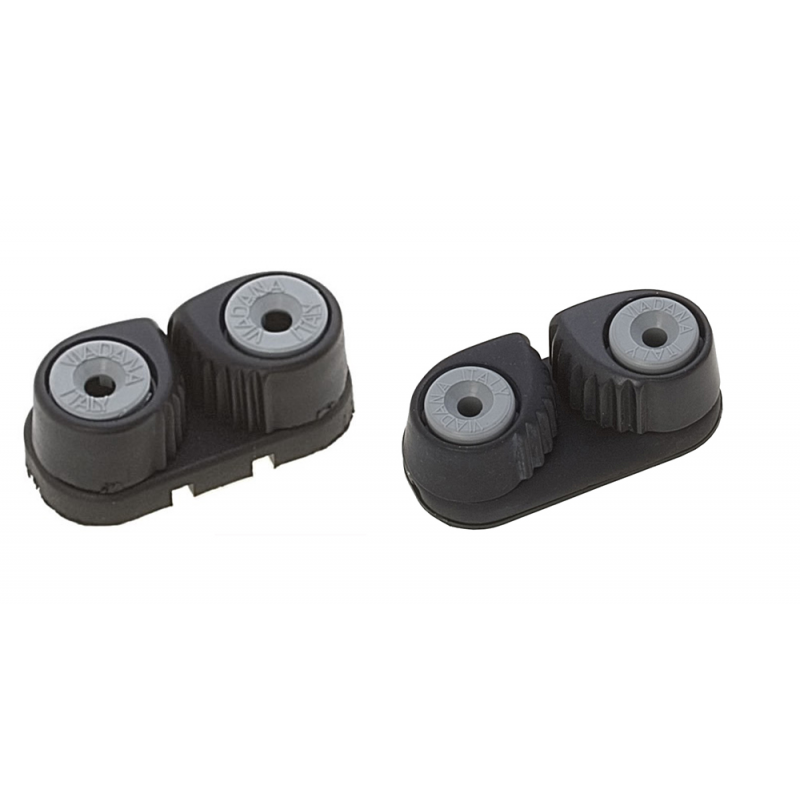 Cam-cleats in carbon fiber. Size: Rope Ø 3-8mm. , Centre distance Ø 27 mm. , Hole Ø 4 , working load 90 kg. , Dims. 47x23x20