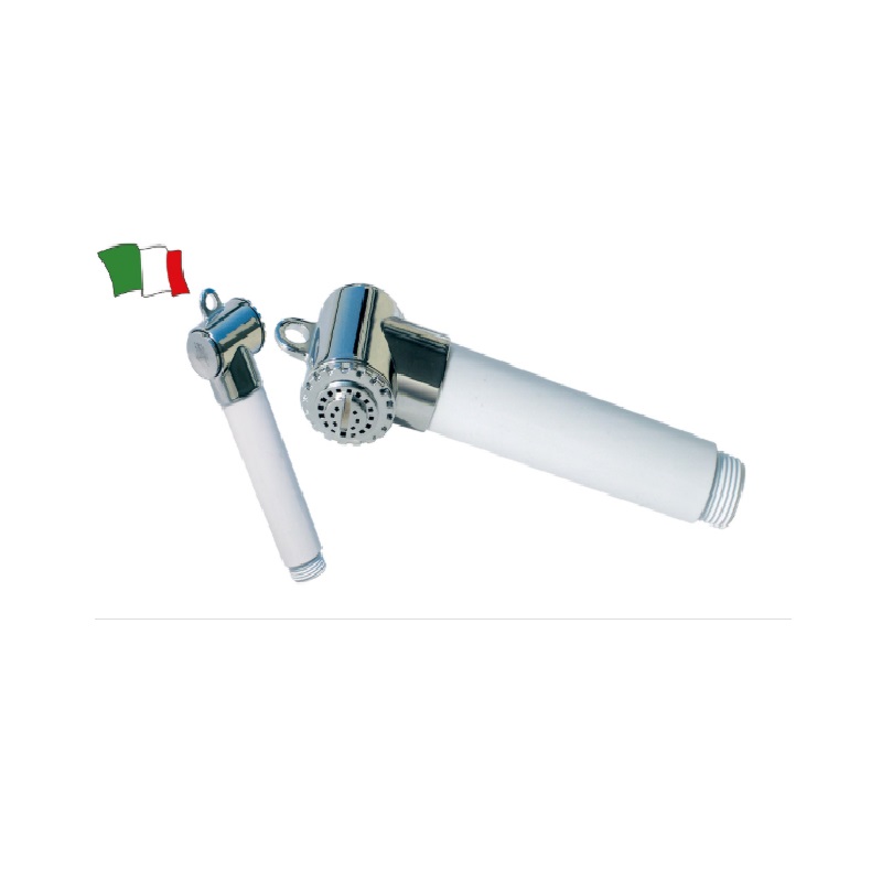 Chuveiro com torneira de interruptor, com válvulas internas, fabricado em material antichoque. Seu conector é compatível com nossos tubos de código 243720 a 243750.