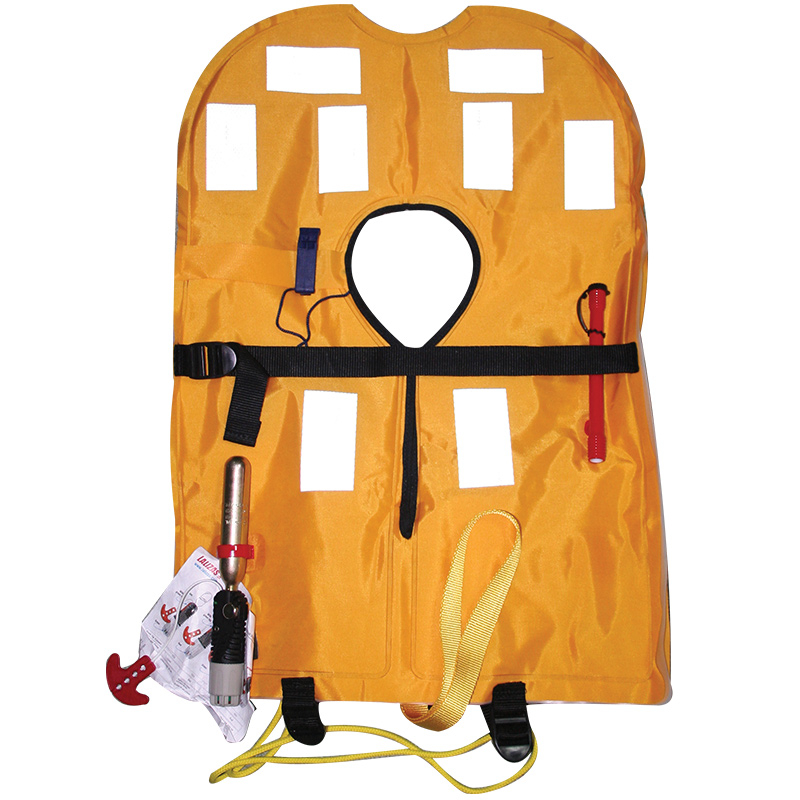 Colete salva-vida Delta 150N seguem as mais recentes especificações SOLAS para máxima segurança enquanto estão a bordo. Possuem duas câmaras de dupla segurança e cada câmara pode ser inflado através da sua cabeça de operação automática Lalizas (20260, certificada por ISO 12402-7), que também suporta a ativação manual. A câmara inflável, que é feita de tecido amarelo de alta visibilidade, com fecho de velcro e seu tubo de inflado incorpora as novas válvulas de alívio de pressão vermelhas Lalizas (20611, certificadas por ISO 12402-7). São equipados com fitas retro reflexivas Lalizas (70180), um apito (70010, certificado por ISO 12402-7 e 8) e um loop de elevação com linha de amigo amarelo para facilitar o resgate.