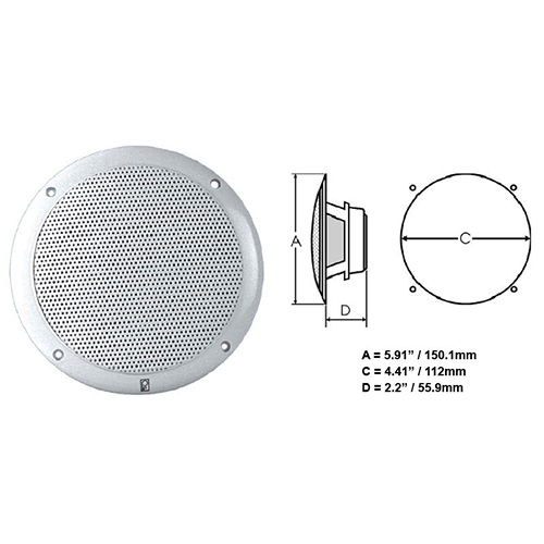 O MA-4055 é um alto-falante coaxial bidirecional de 5” com tamanho de cone. Este alto-falante apresentava um design resistente à prova d’água, fios revestidos de teflon, grades de plástico, cones de polipropileno, tweeters de mylar e molduras de plástico, para fornecer anos de serviço sem problemas. Os alto-falantes de campo magnético ultrabaixo eliminam o problema dos ímãs dos alto-falantes que afetam os equipamentos de navegação, como bússolas e pilotos automáticos. Capacidade de manipulação de potência de pico de 80 watts/par.