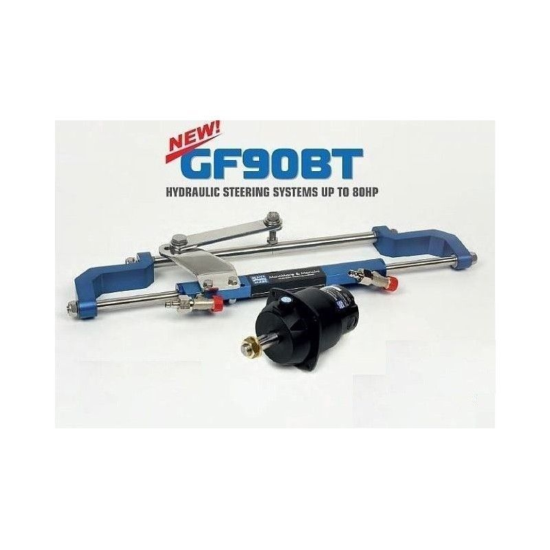 Kit de direção hidráulica GF90BT para motor fora de borda ate 80/90 HP composto por: cremalheira hidráulica, macaco hidráulico. 2 x 5 metros de tubo e 1 lLt de óleo hidráulico, kit de tubo de enchimento de conexão rápida. Kit completo GF90BT