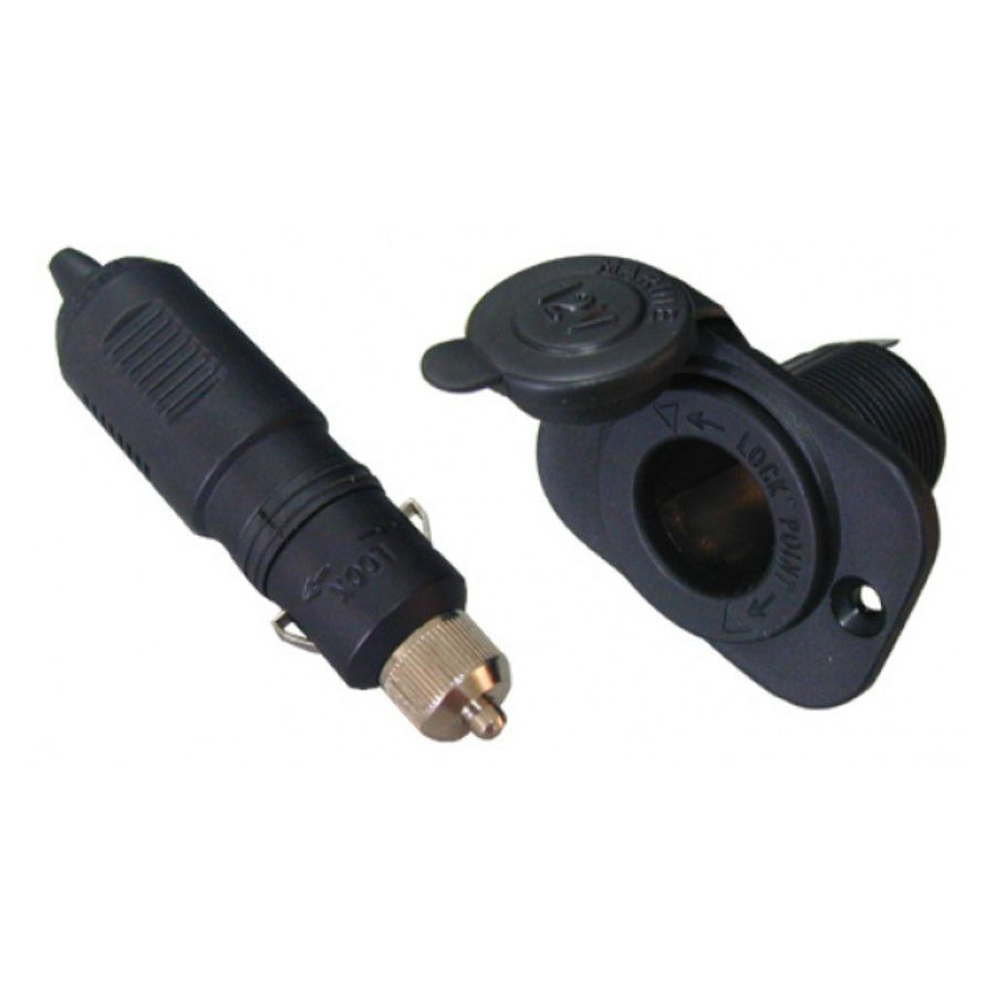 O conjunto de ficha e tomada de 12V é ideal para todos os aparelhos que necessitam de energia elétrica, tais como: telemóveis, lanternas, etc. Feito em nylon anti corrosivo, está equipado com um fusível incorporado de 10A e uma luz LED indicadora de carga. O conjunto de ficha e tomada da LALIZAS possui uma tampa à prova de água e um sistema de interligação que prende a ficha à tomada de um modo seguro. Só pode ser utilizado com artigos que funcionem com corrente de 12V e está disponível em preto.