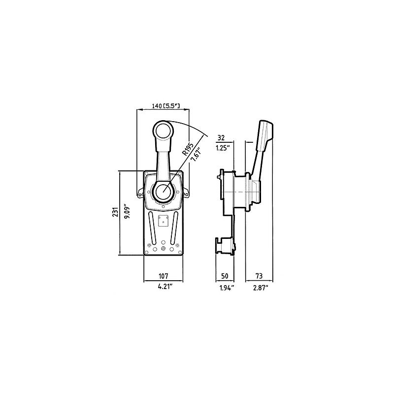 Top and side mount dual action controls With lever lock device, hand lever withoutjut for use on sailing bofor throttle and gearbox. Suitable for any kind of boat with outboard motor, inboard, and stern-drive, with hydraulicgearbox. Mounts port or starboard, horizontally or vertically. The hub and thelever are made in die-cast aluminium and varnished. Built-in friction drag toprevent throttle creep. Warm-up are done by pulling out the hand levers. Withsafety switch X12 (optional), start can be done only with gearbox in the neutralposition. The model B184 has in the hand levers a trim switch to adjust tilt ofoutboard and stern-drive. Suitable for all type of control cables C2-C8-C14 e Mach0-Mach14. C5-C16 and Mach 5cables need adapter kit K35, art. 4242069.