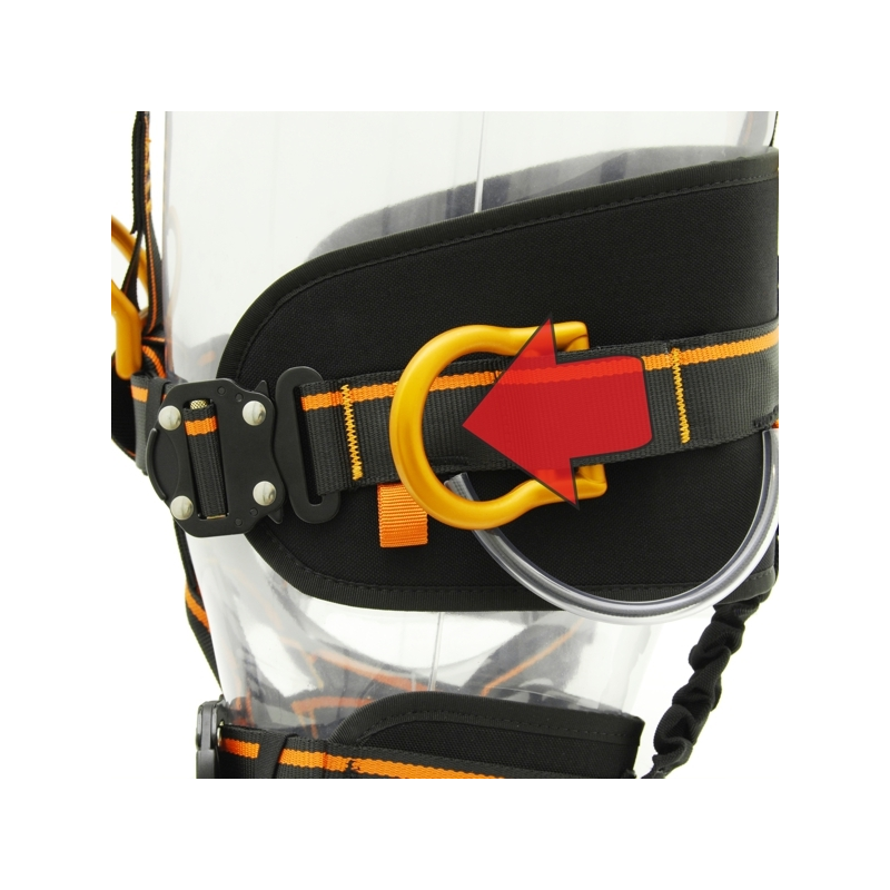Made of polyamide with a wide waistband with high cut, for maximum support of the lumbar belt, comfortable padding on the leg loops, 2 large side material-holder rings, 5 webbing slots to accommodate insulated material and allow you to customize the arrangement of the equipment, facilitating immediate identification, 4 QUICK closure buckles on the waist and leg loops. Sternal and dorsal fall arrest attachment points. Ventral attachment point for rope progression. Snap-folding aluminum side positioning points, which reduce the possibility of snagging when not in use. EN 361 – EN 358 – EN 813