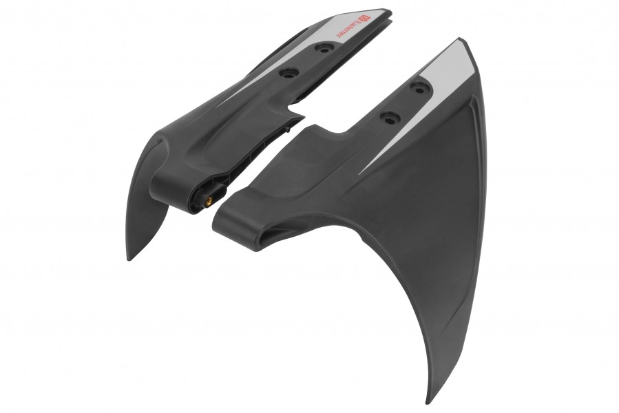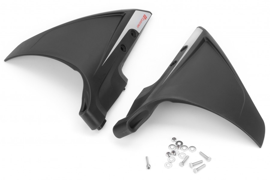 Estabilizadores em material compósito, com novo perfil hidrodinâmico com proteção propulsora. O uso de estabilizadores facilita a navegação, pois além de reduzir o consumo de combustível, facilita muito o deslizamento, evitando a cavitação e estabilizando o barco.