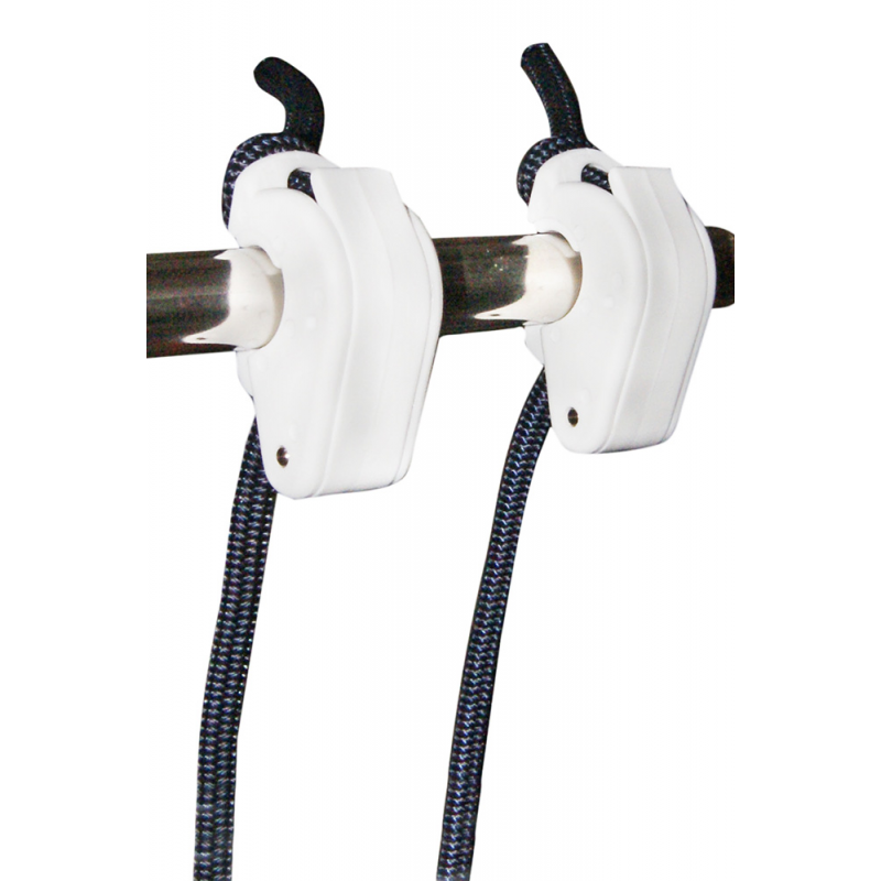 Fender holder made of white plastic. Are used to set and adjust the height of the fenders without knots. Universal rails for tube Ø mm.22/25. Fenders rope Ø mm. 8.