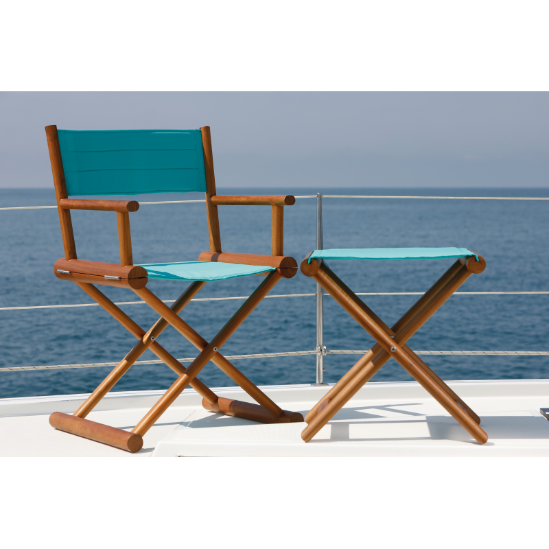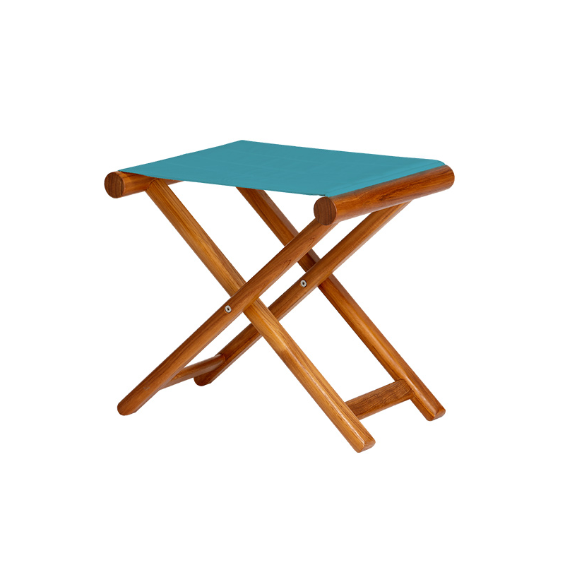 Teak stools, foldable. With waterproof, UV-resistant fabric.