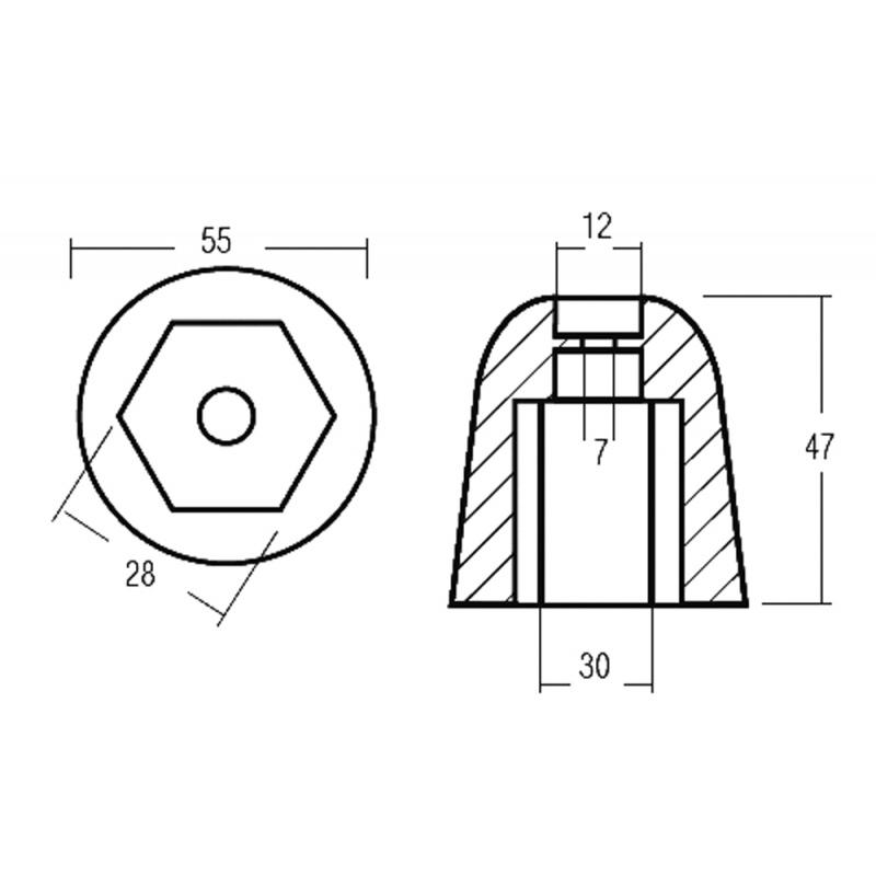 Hexagonal Zinc ogive for bow thrust VETUS (Or. Ref. BP195).