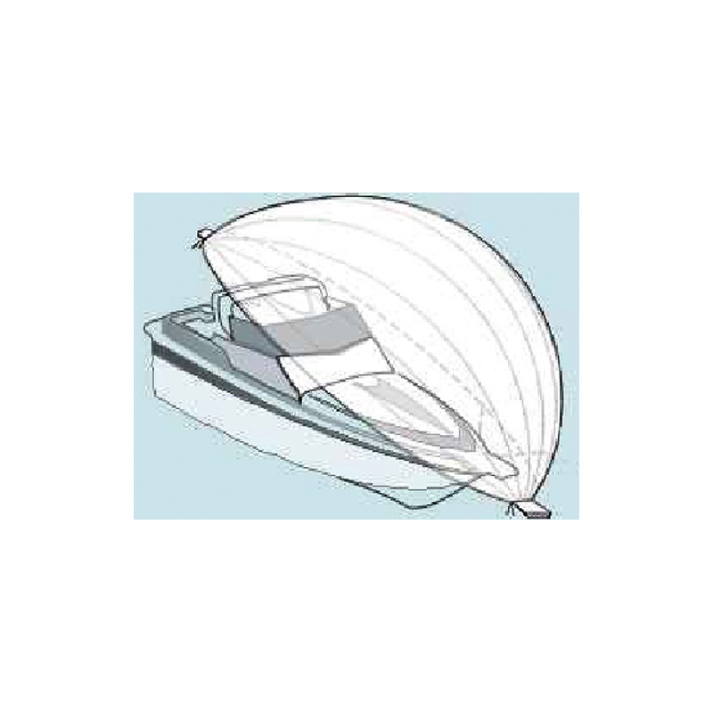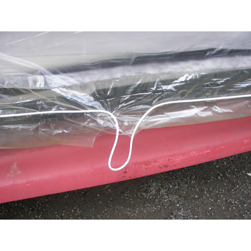 Indoor Boat Cover – Version with elastic Its uniqueness is the two elastic applied laterally along the entire length, to facilitate and reduce time of installation. Sold in roll. Installation instructions:1. Roll out the cloth from bow to stern keeping the boat leaving a power surplus of about 50 cm on each side.2. Apply two clamps spaced about 30 cm and cut the cloth.3. Remove the rubber bands and knot.4. Open the canvas on the boat.5. Pull the rubber band from one end and knot to hold it in traction.6. Use the appropriate pre cuts if needed reinforcements to connect across the perimeter.