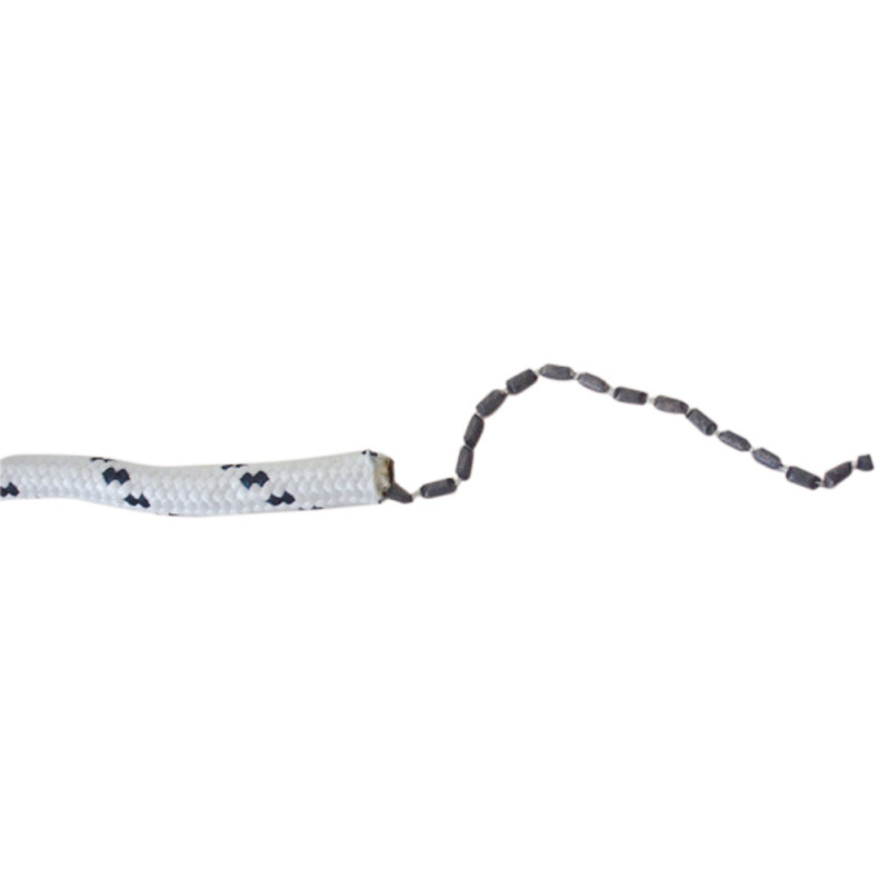 Braided Polyester Rope with lead, for barbotin winch, to avoid rusty chain, too much weight at bow and bad storage. This system eliminates the inconveniences created by chain, rust, difficult storage, weight on the bow, etc.