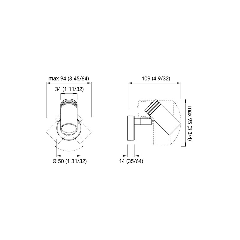 Adjustable spotlight with wall mounted, adjustable, chrome-plated aluminum. warm white light (140 lumen). with switch. polarity sensitive.