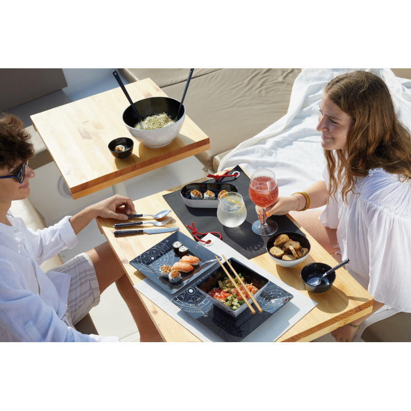 Tableware made of 100% melamine, BPA Free. Dishwasher-safe. With a non-slip ring at the base that prevents slipping on the table.