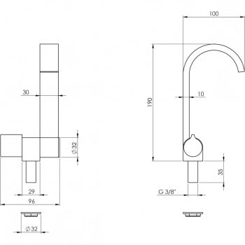 Chromed brass tap, control right.Lowering spout, Ø mm. 10.
