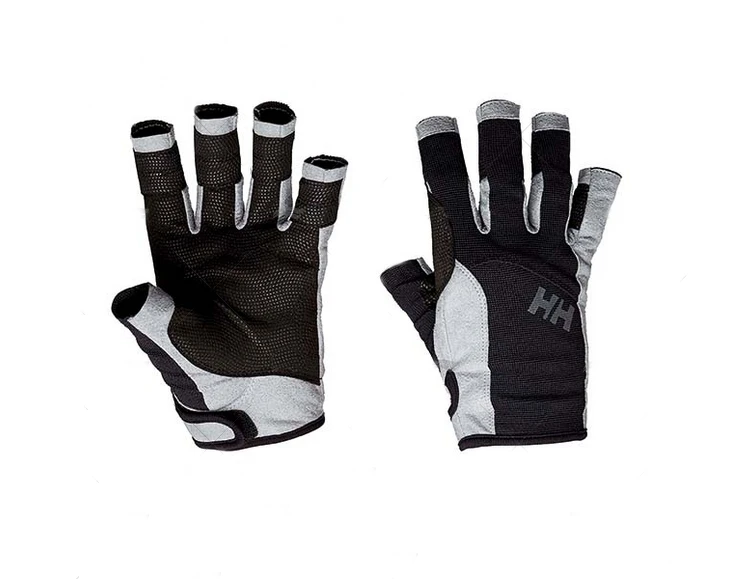 Luvas curtas de couro para vela/corrida H/H. Costura dupla, punho com fecho de velcro, Spandex superior para conforto ideal, palma reforçada e dedos de couro envolventes. Cobertura da palma para melhor aderência e proteção.