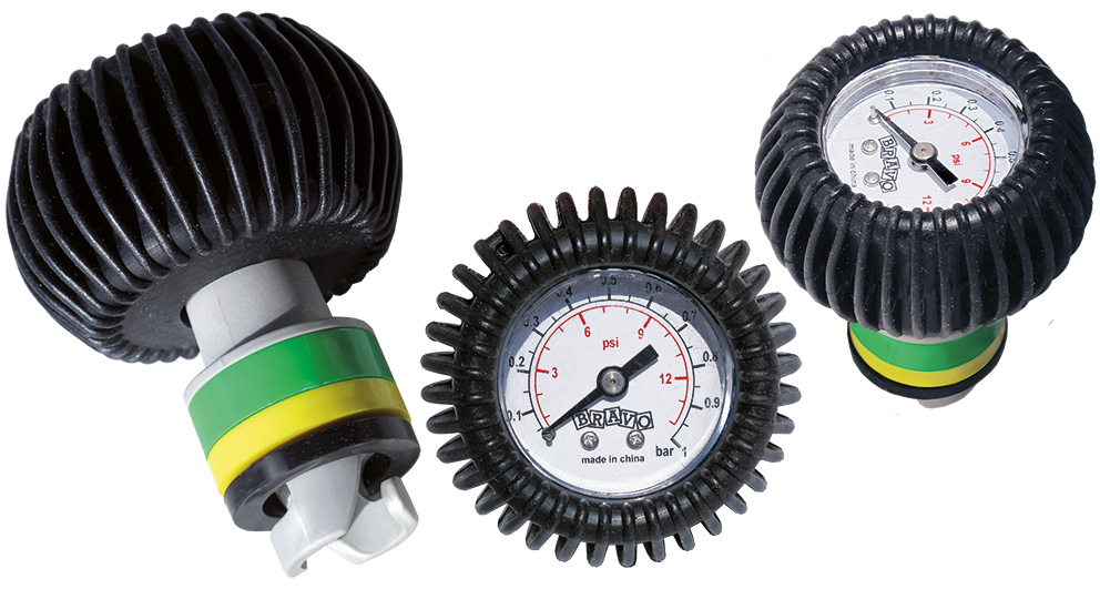 Medidor regulável para controlo de enchimento até 1 bar recomendado para barcos insufláveis, para o máximo conforto e segurança.