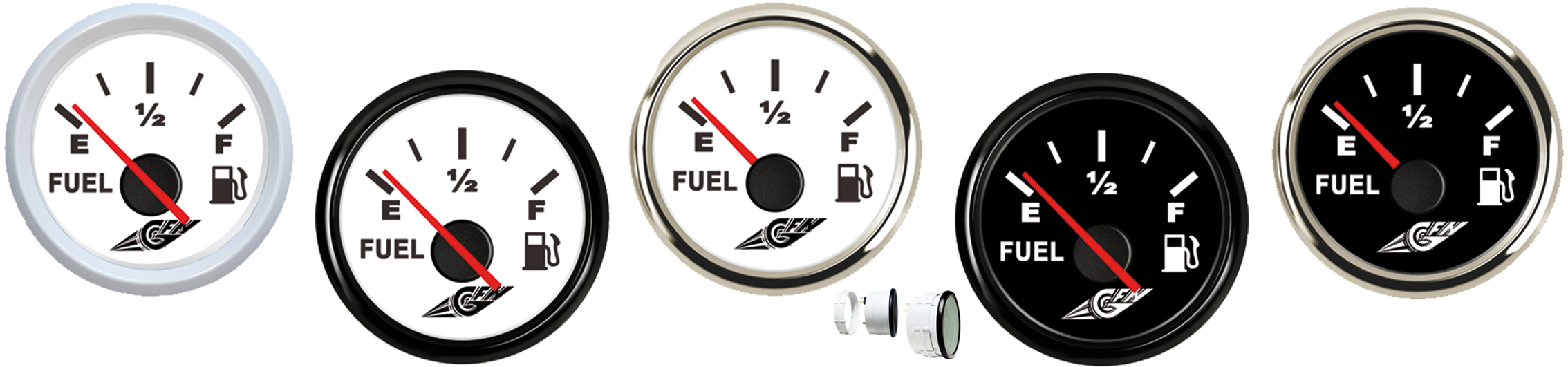 Medidor de nível de combustível embutido (dados em percentagem), à prova d’água IP67, equipado com luz de fundo noturna.