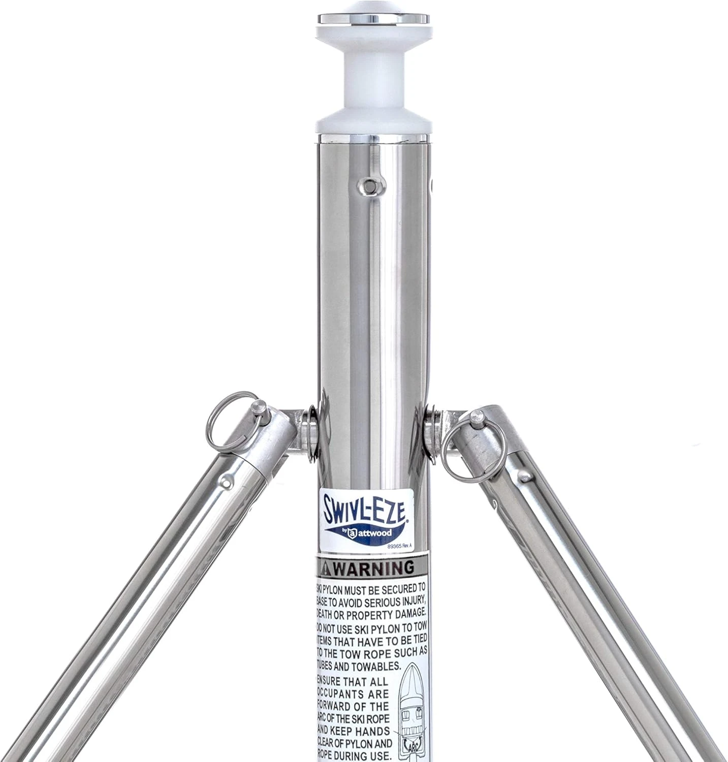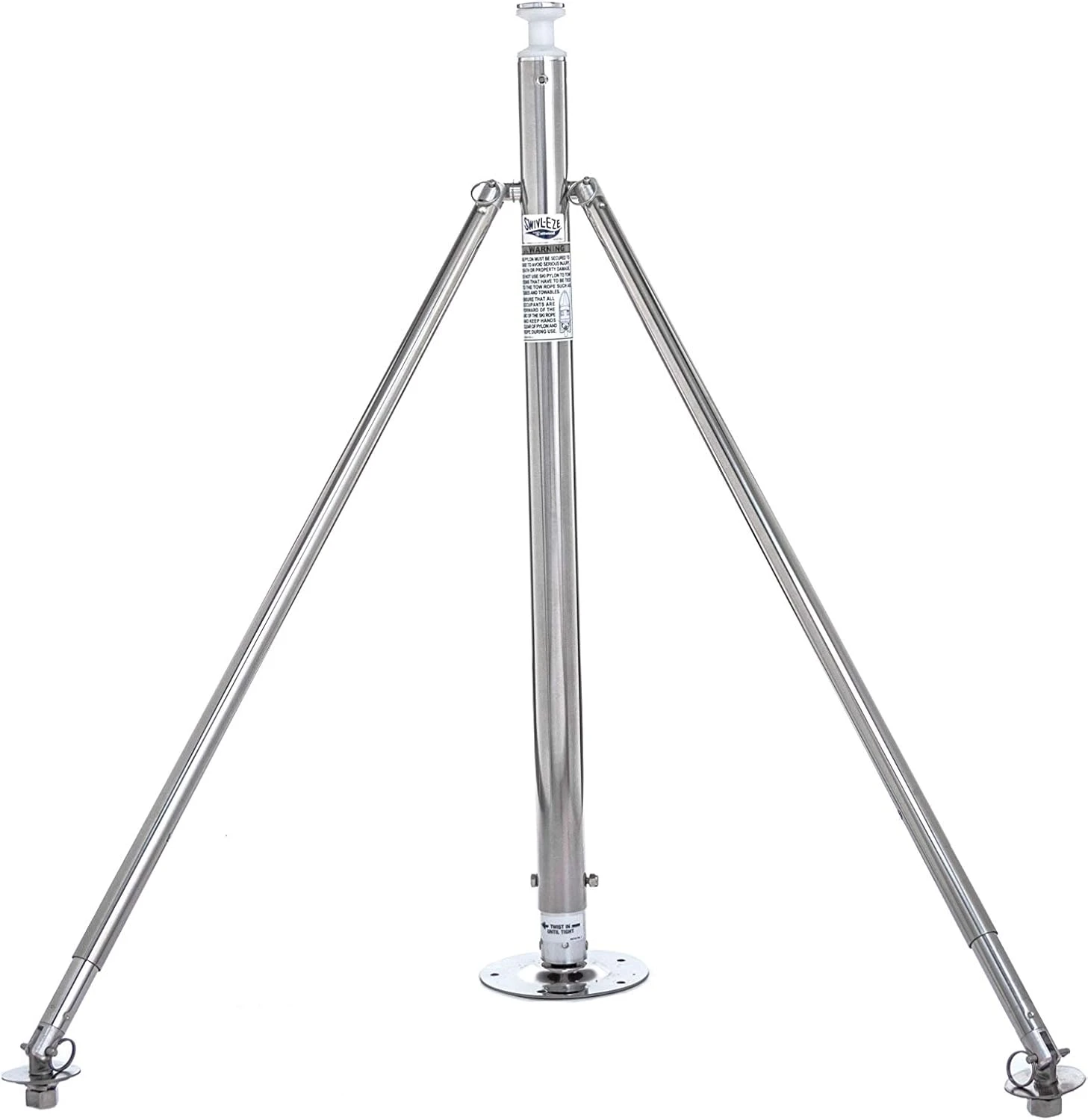 Cabeça giratória 360 °. Mastro ajustável em aço inox de 51 mm de diâmetro. Braços  de aço inox 22 mmx 25 mm. BAse de aço inox roscada de 152 mm.