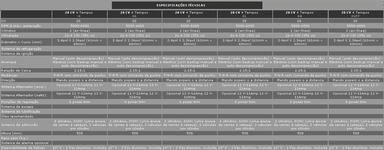 A árvore de cames à cabeça permite um funcionamento suave, silencioso e eficiente. O sistema de escape através da hélice reduz os ruídos de funcionamento. Os apoios exclusivos deste motor minimizam as vibrações. A bomba de aceleração assegura uma rápida resposta.