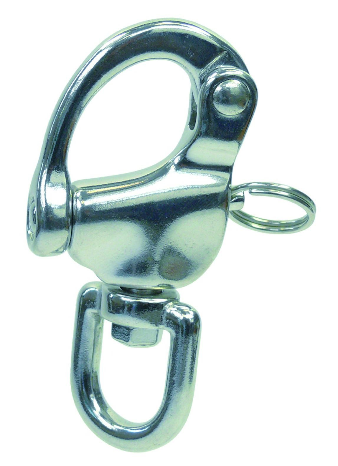 Mosquetão com olhal giratório em aço inox.