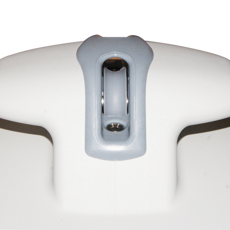 Grey neoprene cleat (RAL 7035) with sheave. Maximum rope ø mm. 14/16 max. Dims. mm. 240x192x70h