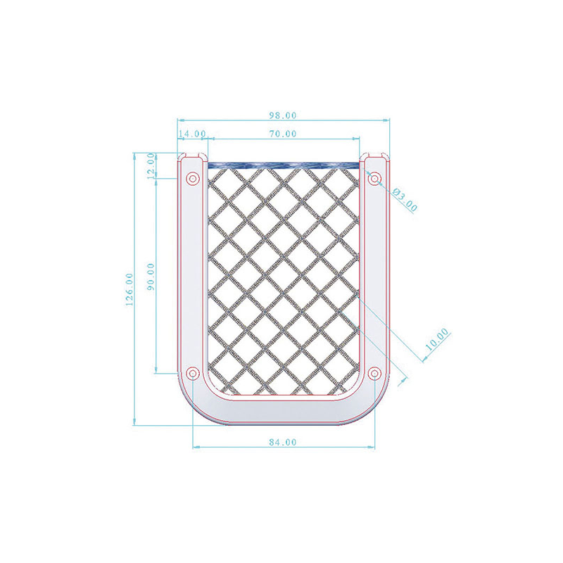 Storage net with upper thread in elastic braid, fixing with screws, dimensions mm. 126 x 98