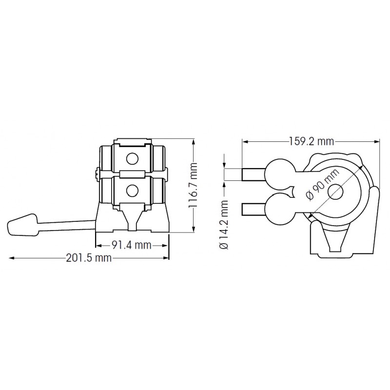Double-acting foot pump for sinks and showers, derlin body, stainless steel springs, self-priming, adjustable hose nozzles.