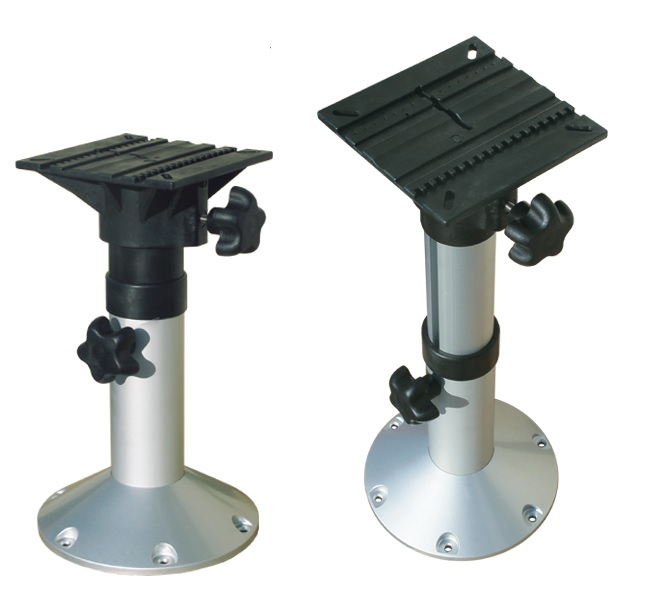 Base telescópica e giratória para assento, fabricada em alumínio anodizado com suportes de plástico.