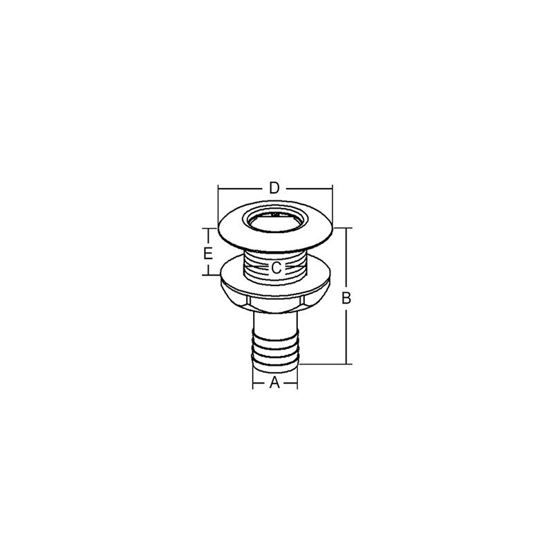 POLISHED BRASS THROUGH HULL WITH HOSE CONNECTION