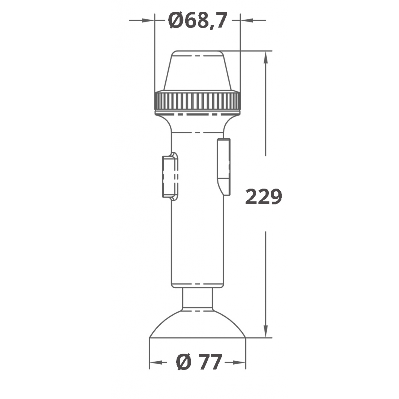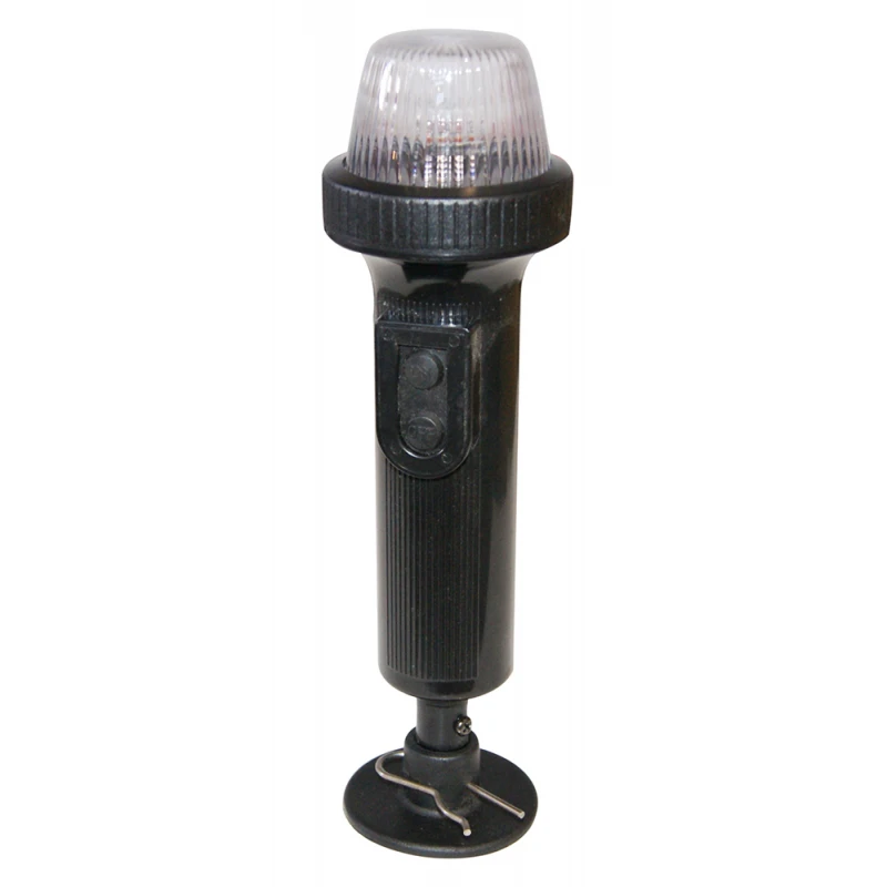 Navigation lightplastic, portable and water resistant. Ideal for dinghies or boats up to 7 m, unscrewable base. Works with interchangeable flashlight type D batteries (item 3985004) not included. E10 type bulb.