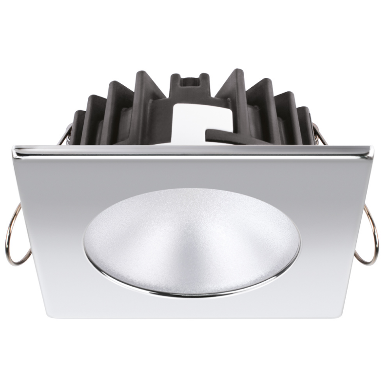 Waterproof downlight IP66, with POWER LED ( 245 Lumen ) high brightness, warm white light, miror polished 316 AISI stainless steel sqaure frame,with satinized anti-shock material diffuser, ideal for ceiling and wall installation. Polarity sensitive.
