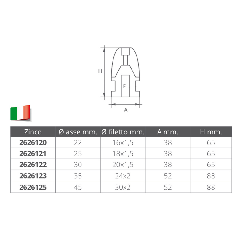 ZINC OGIVE FOR SHAFT Ø MM.22
