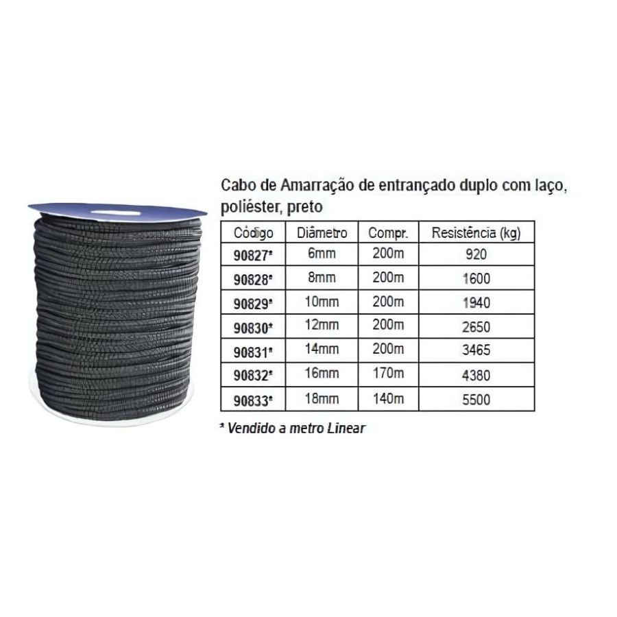 Rolo 200mts – Cabo de Amarração Ø10mm – Preto
