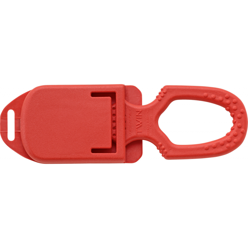 Rope cutter with stainless steel blade. Handle in reinforced nylon and fiberglass. Complete with scabbard. Length mm.135