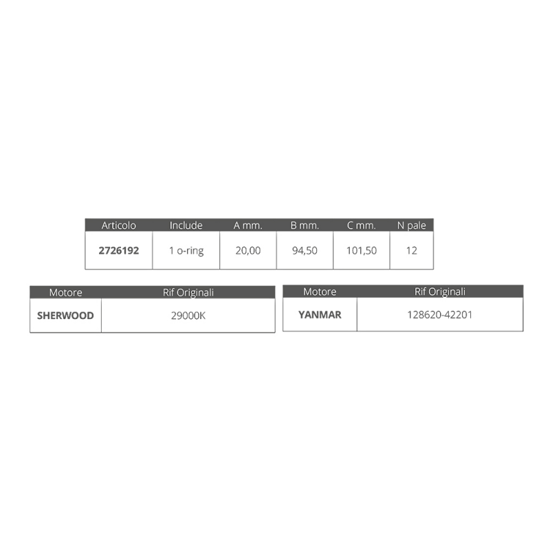 Dim. Ø int.mm. 23.8 Ø ext.mm.95 thickness mm.102, nr.12 blades