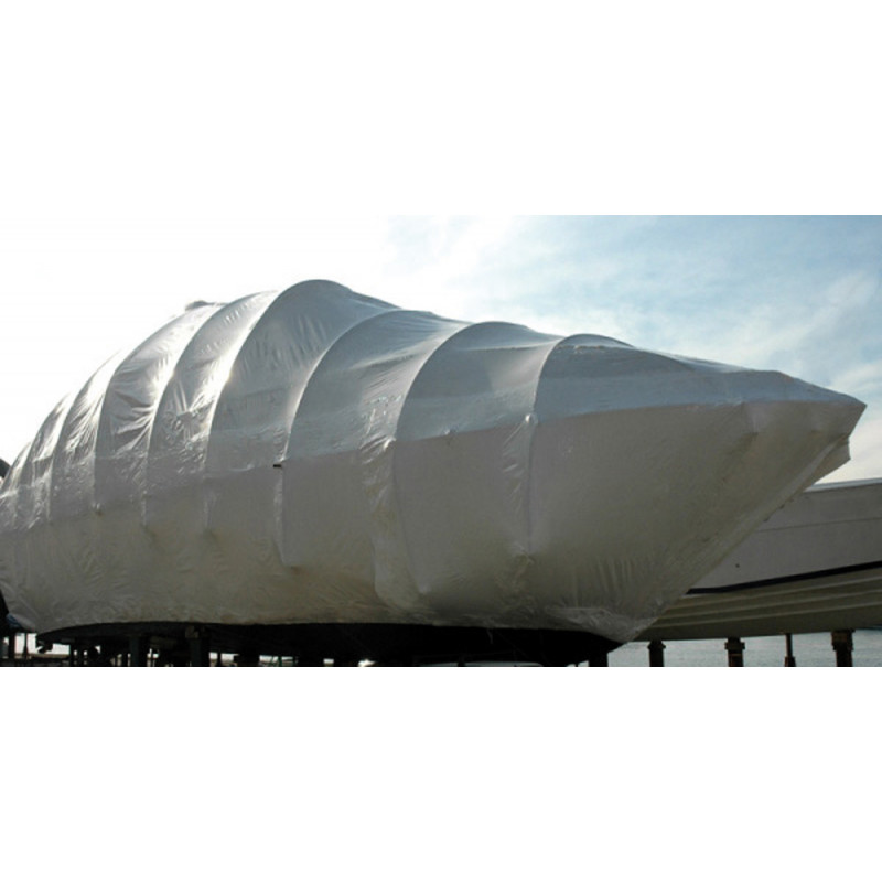 White heat-shrink sheet produced in high-grade polyethylene and with a white additive stabilized to ultraviolet rays (UV).It has the advantage of reflecting the sun’s rays and therefore allows better conservation and the maintenance of low temperatures. Ideal forthe storage of each boat outside. It can also be used for packaging of boats being shipped both by truck and by ship.