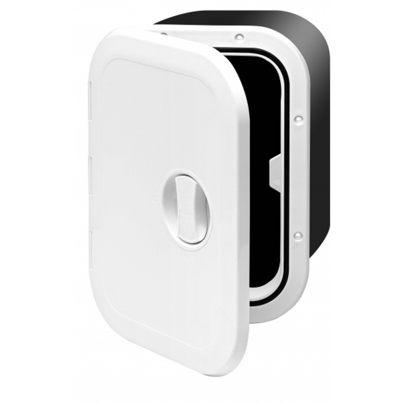 Storage hatches with removable top produced in high quality ASA UV resistant, ensures constant color and quality over time. The exclusive honeycombstructure inside the hatch provides a optimum rigidity, supports a 130 kg person without distorsion or mechanicalstrain. The EPDM rubber gasket ensures a perfect seal. All doors are supplied with a set of two hinges that offer twomounting alternatives:1) Classic hinge with 180 ° opening2) Special hinge that allows a wide open with removable hatch top. Available on request in black and gray RAL 7035 .