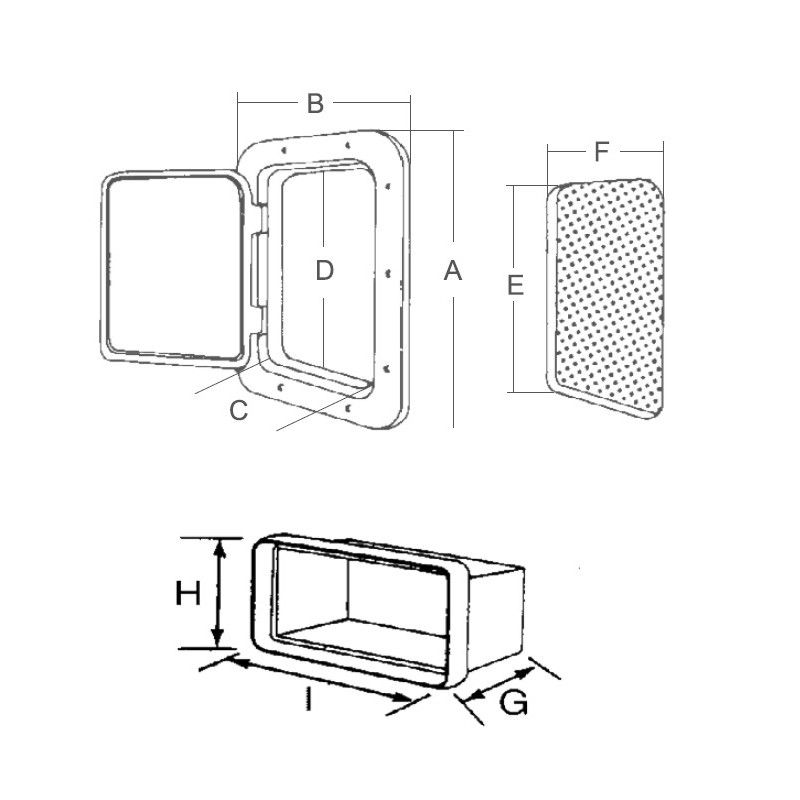 Storage hatches with removable top produced in high quality ASA UV resistant, ensures constant color and quality over time. The exclusive honeycombstructure inside the hatch provides a optimum rigidity, supports a 130 kg person without distorsion or mechanicalstrain. The EPDM rubber gasket ensures a perfect seal. All doors are supplied with a set of two hinges that offer twomounting alternatives:1) Classic hinge with 180 ° opening2) Special hinge that allows a wide open with removable hatch top. Available on request in black and gray RAL 7035 .