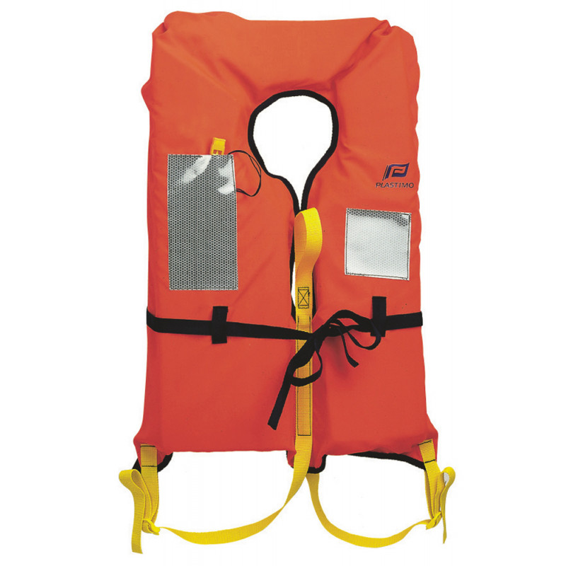 Lifejacket 150N Self-righting capacity in polyethylene foam. Outershell 100 % polyester, fluo orange for optimum visibility. With 300 cm2 retro-reflecting stripes and whistle.Fastened with round-the-waist cord. Grab handle. Double adjustablecrutch strap. CE EN ISO12402-3