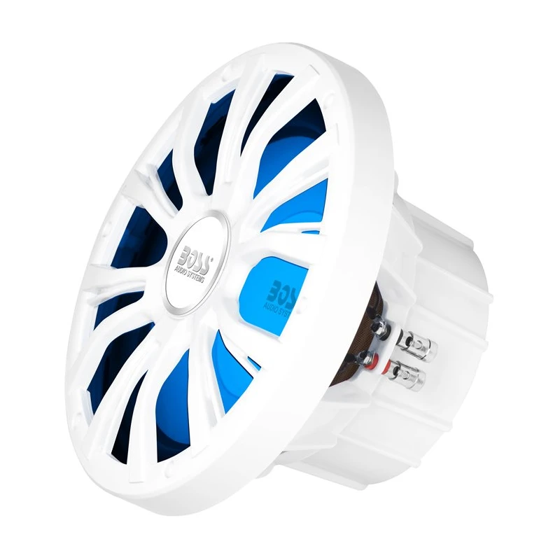 Marine speakerssuitable for installation on any type of boat. Resist without any problem to corrosion by salt water, even after installation the color remains unchanged, without undergoing mutations due to atmospheric agents. led light with remote control. SUB-WOOFER single speaker, max. 800 W (400W RMS), 4 ohm impedance, frequency response 44hz. Dim. mm. 268, mm diameter hole. 238 prof. mm. 116